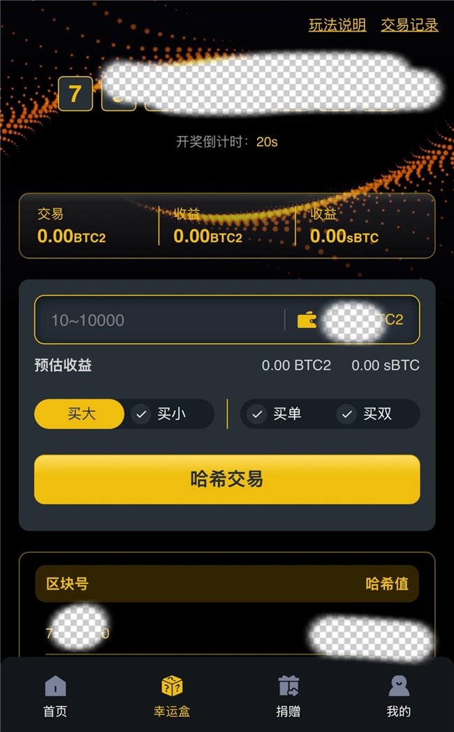 通过玩游戏去判断每一个哈希值的尾号各位数字是:单、双、大、小